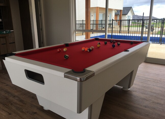 This is the Club Pool Table. It's a UK made, slate bed pool table, supplied with a full set of accessories. It comes in a black or white finish and with your choice of cloth colour from green, blue, red, burgundy, purple, black, grey or taupe.