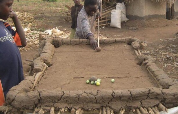 This is one of the first pictures we ever posted on our previous website : the mud pool table. Sure, it might not be very flat and the cushions might not give a good response but, all things considered, these guys have done a great job.