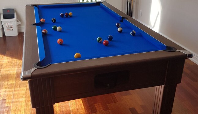 The Traditional Pool Table in Dark Walnut and Blue