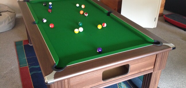 That's right : a slate bed pool table, with Strachan 6811 Cloth, 2 cues, pool balls, triangle, dust cover, tips and chalk for just 1750€. Plus, if you are within the central Algarve region, we can deliver and install for free. Get yours before we sell out.
