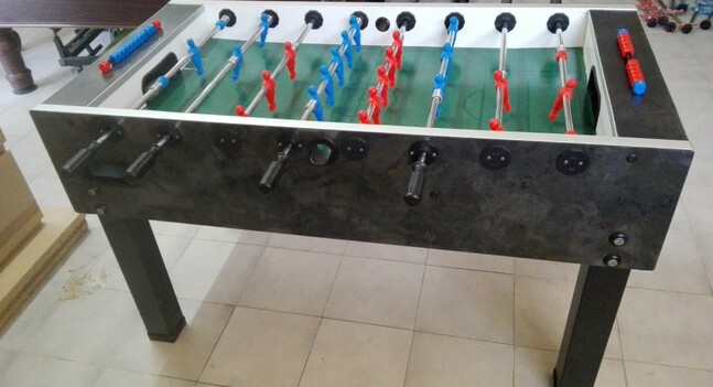 This usually means a 30% to 50% discount against the price of a new item. For example, this outdoor Garlando foosball table is supplied with new telescopic player rods, balls, cover and delivery at less than half price : just 475€. If you would like to know more, then please get in touch.