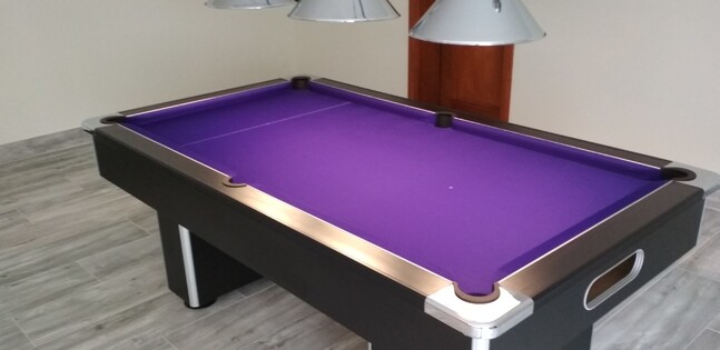 Here's one of our best selling pool tables in the Algarve from 2017. The Slimline Pool Table available in black or white with your choice of cloth colour from green, blue, red, grey, taupe, burgundy, purple or black - available to view at our showroom in Almancil.
