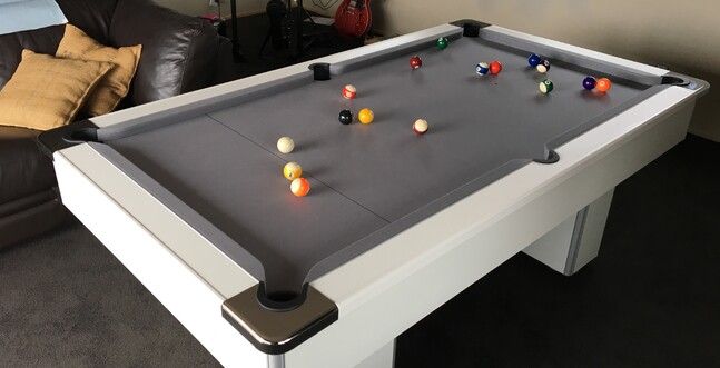 This is the Slimline Pool Table in white and grey. It's a 7ft UK specification slate bed pool table and comes complete with a full set of accessories. It's available for immediate delivery and costs just 1700€. Happy New Year - Algarve!