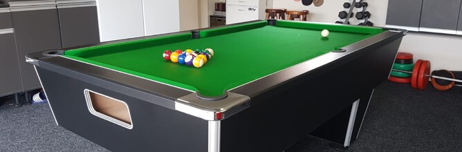 This is the Club Pool Table in Black and Green with Strachan 6811 Cloth and a full set of accessories. It is a UK specification, 7ft Pool Table and is available now with free delivery and installation to most parts of the Algarve. Get in touch to find out more....